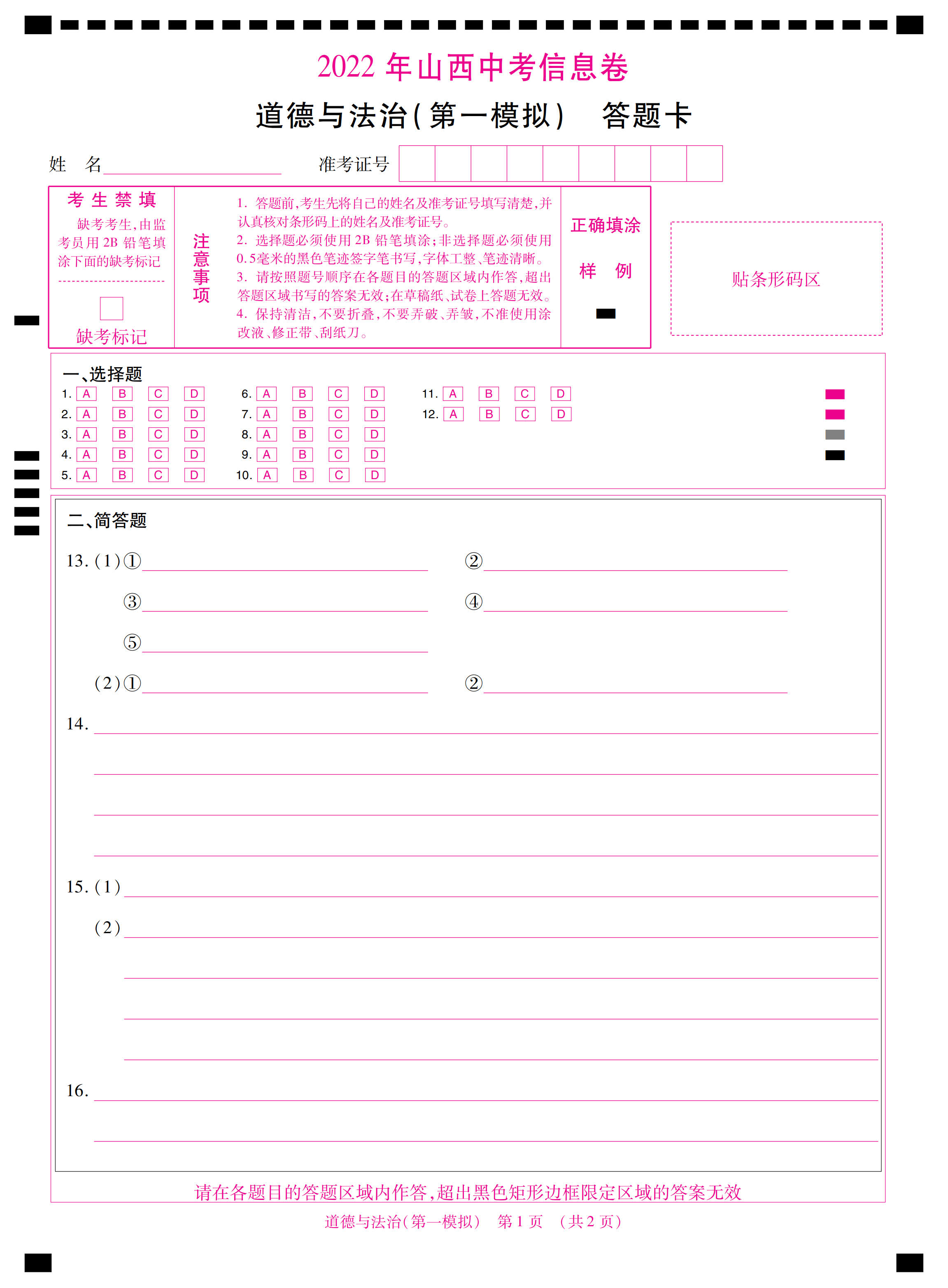 【福建专用试卷答题卡】八下数学人教版 ——一遍过