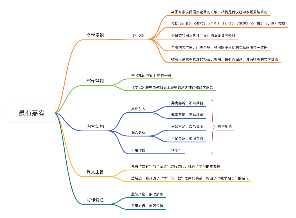 22《〈礼记〉二则——虽有嘉肴》教材帮八下语文-思维导图