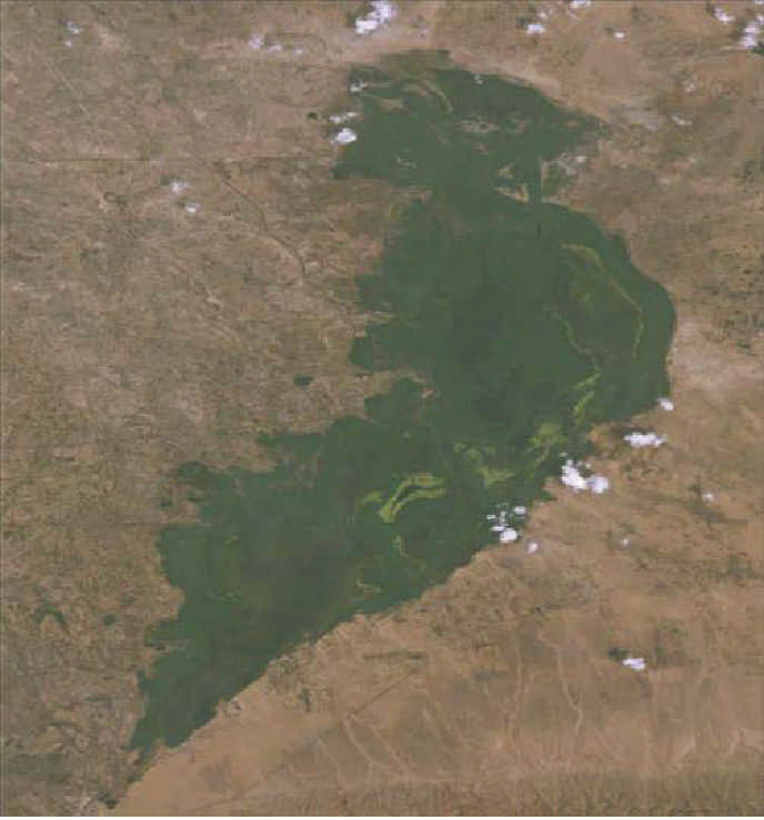 2008年乌梁素海核心区域水面被黄藻覆盖,水体严重污染